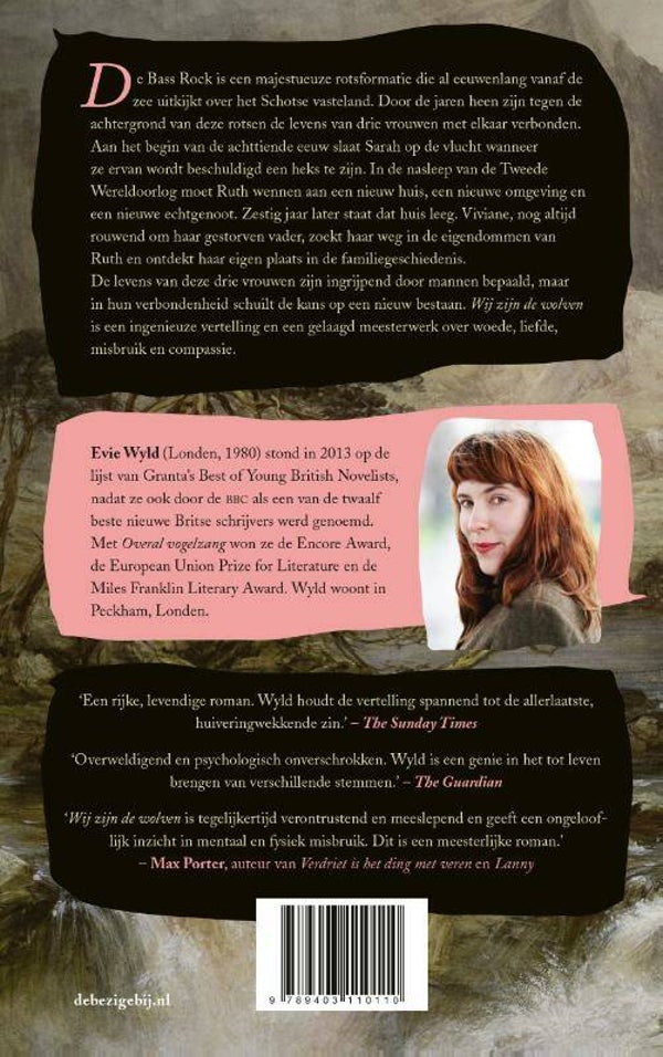 De levens van deze drie vrouwen zijn ingrijpend door mannen bepaald, maar in hun verbondenheid schuilt de kans op een nieuw bestaan.Wij zijn de wolvenis een ingenieuze en meeslepende vertelling, een gelaagd meesterwerk over woede, liefde, misbruik en compassie.